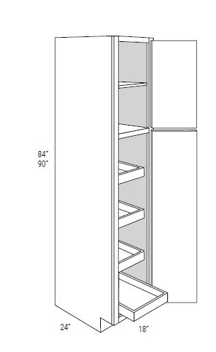 18" Wide 24 Deep 2 Doors 4 Rollouts Tall Pantry Cabinets With Soft-Close Rollouts